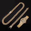 Gold / Silver Necklace+Watch+Bracelet Iced Hip-Hop Style Jewelry Set