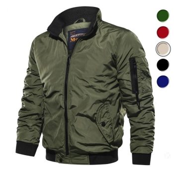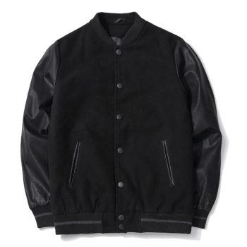 Men’s Black Woolen Bomber Jacket with Leather Sleeves